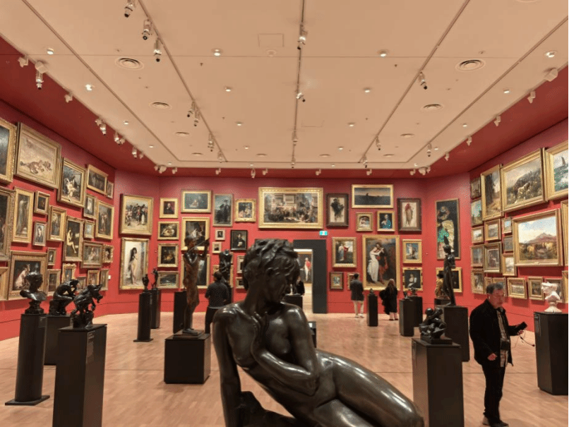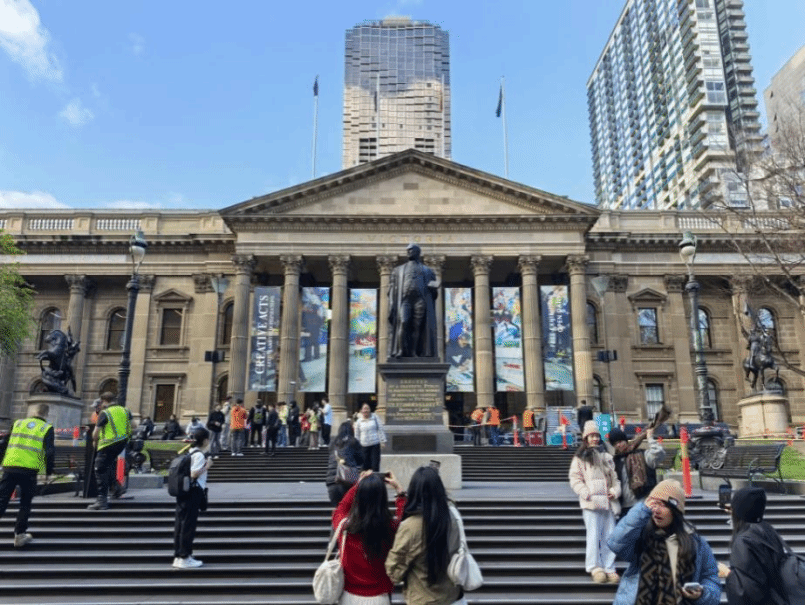 下午4点,师生们乘车前往维多利亚国家美术馆。馆内珍藏逾7万件艺术品,涵盖照片、织物、雕塑、绘画、古玩、东方屏风画以及澳大利亚原住民艺术作品等。这些展品按类别与时期精心策展,交相辉映。师生们在欣赏这些跨越历史与当代的艺术珍品时,既能感受到独特的澳大利亚维多利亚时代风情,亦能从中领略其蕴含的现代精神与风采。