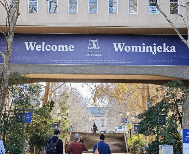 上午,实习队首站走访了墨尔本大学。这所始建于1853年的高校是澳大利亚最具声望的研究型大学之一,在2025年QS世界大学排名中位列全球第13位。参访过程中,师生们重点考察了校园内的历史建筑群,了解其空间布局与风格演变,实地感受高校文化与城市发展在地理空间上的交织联系。