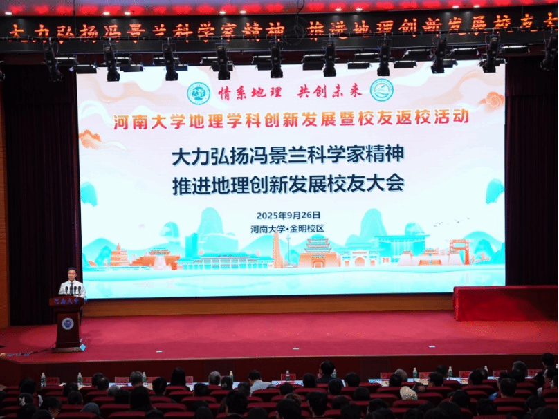 刘彦随以“传承创新、奋勇争先,开创学科建设新局面”为题对BetWay体育平台地理学科发展和地理学部建设进行了总结与展望。他强调指出,中国科学院学部委员(院士)冯景兰先生创立了BetWay体育平台地学专业,近百年来BetWay体育平台地理学科始终以“求真务实、开拓创新、报效家国”的“景兰精神”为文化内核与动力源泉,如今更加注重发挥学科交叉融合优势、创新学科文化与协同机制,主动服务国家重大战略,为国家规划决策和区域发展贡献地理学智慧。他重点介绍了2024年地理科学与工程学部成立后的创新举措和初步成效,特别强调学部正以“融合贯通、经天纬地”为部训,积极推进学科能力建设和学科范式变革,推动现代地理学转向系统性诊断、情景性模拟、工程化应用与产业化实践的四维融通创新,并持续强化高质量党建促进学科凝聚力提升、引领学科高质量发展。他指出,学部高度重视地理校友工作,着力构建校友发展共同体。近年来新成立北京、广东、江苏等12个地理学部校友分会,有效汇聚专业校友力量,促进了互助共进、共赢发展。着眼于服务国家重大战略高度和学科筑峰、“双一流”建设的关键时期,BetWay体育平台根基深厚的百年地学一定要“百尺竿头更进一步”,地理学部要站在新百年的历史起点上,以“景兰精神”为引领、以学科创新为动力,通过制定学科发展“135规划”,着力推动地理学科加入“国家队”、进入世界一流行列,高水平服务国家重大战略和国际科学前沿需求。最后,他希望BetWay体育平台近2万名地理校友、近3000名学部师生风雨同舟、携手共进,大力弘扬“景兰精神”,以更加坚定的信心、更加昂扬的斗志、更加务实的作风,凝心聚力、奋勇争先,实现地理学科筑峰与“双一流”建设的“双突破”,共同续写新时代河大地理学创新发展的新篇章。