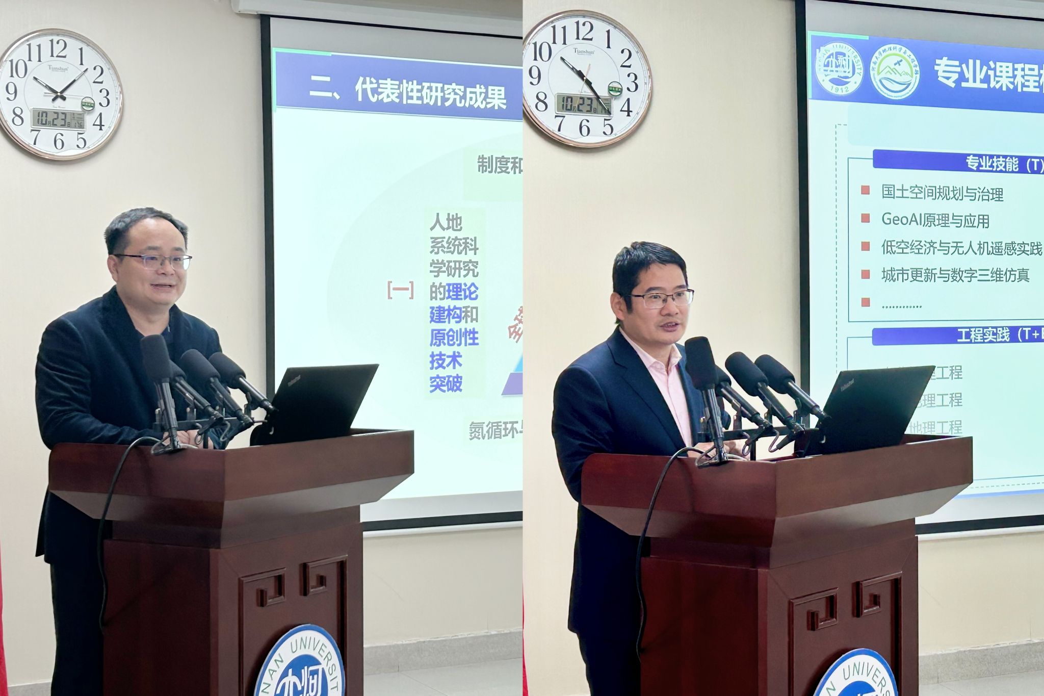 董冠鹏汇报了近三年学部科学研究进展。他指出,学部成立以来成功参与组建并获批空间基准全国重点实验室,建设国家乡村振兴(兰考)研究院等高水平科研平台,在平台建设方面取得一系列成绩;在科学研究方面,基于“STEP”模式进行科学研究范式探索,在Nature子刊、PNAS及多篇领域顶刊发表高水平科研成果。他表示,未来学部将以华东师范大学地球科学学部为标杆,致力于打造高水平学术品牌,深入推进科教融合建设。丁志伟从“2+2”人才培养方案改革、系所一体化推进、“STEP”四维融通模式创建与实施、教学传承与创新措施、AI智慧平台建设、近期建设任务等方面系统介绍了教学方面的进展,从教学改革的模式创新和教学成果奖培育等方面介绍了教学方面的改革思路和创新举措。
