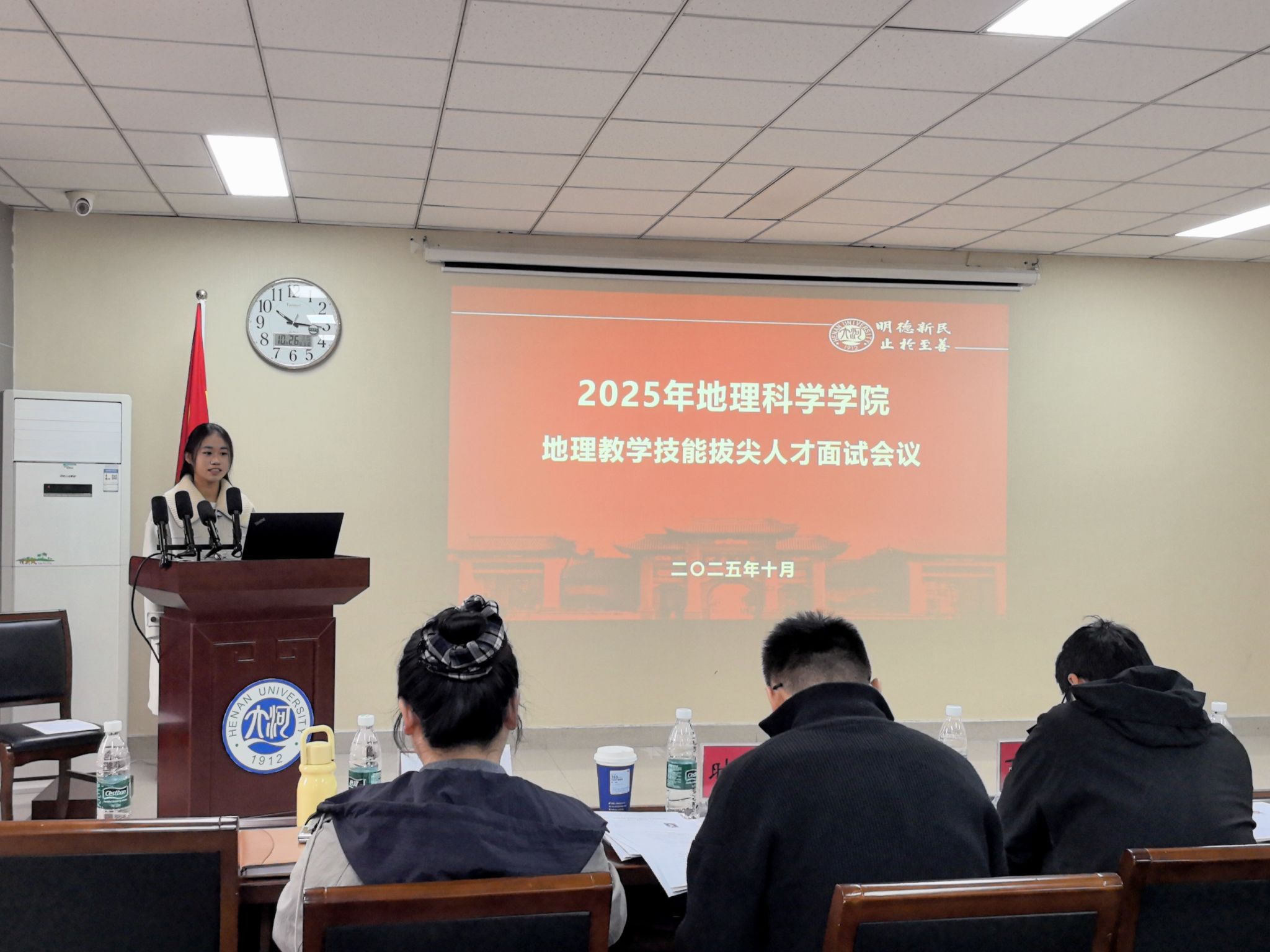 为全方位考察学生的综合素养与专业潜力,筛选地理科学领域优秀人才与学科发展优质储备人才。10月26日上午,我部于金明校区地学楼二楼215报告厅开展景兰学社学生干部面试与地理科学系地理教学技能拔尖人才、地理科研创新人才面试工作。地理科学学院党委副书记徐小军、党委书记助理冯文璐、研究生与科研管理办公室主任时振钦、地理科学系副主任李开封、教务办秘书王卫雯、2025级辅导员刘升云担任本次面试评委。本次会议由地理科学学院副院长主任丁志伟主持,共60余人参与本次面试。
