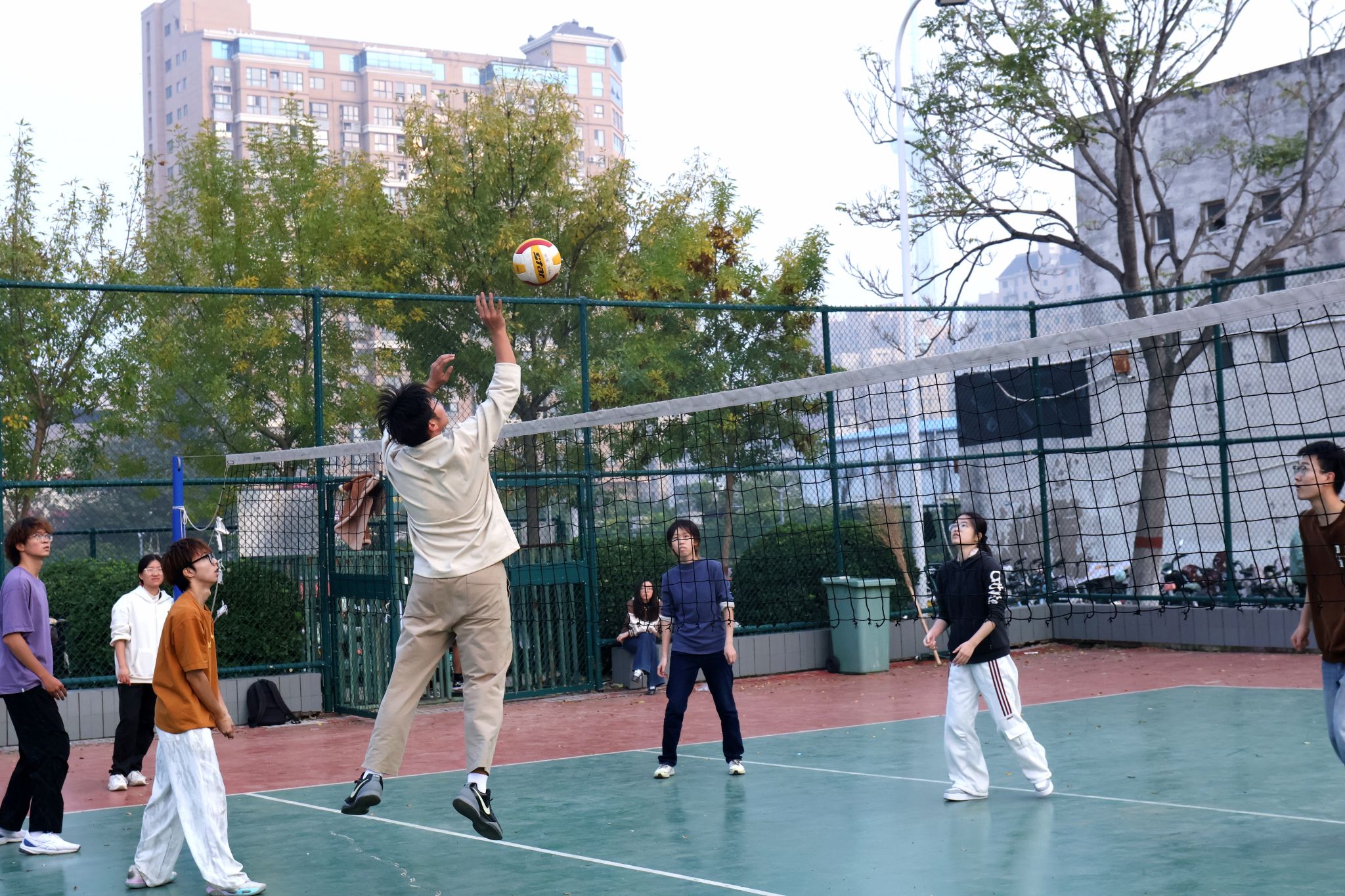 热血燃动青春,拼搏挥洒汗水。为积极响应国家“全民健身”号召,进一步丰富校园文化生活,增强学生体质与团队凝聚力,10月26日下午,我部在金明校区排球场举行“迎新杯”排球赛。