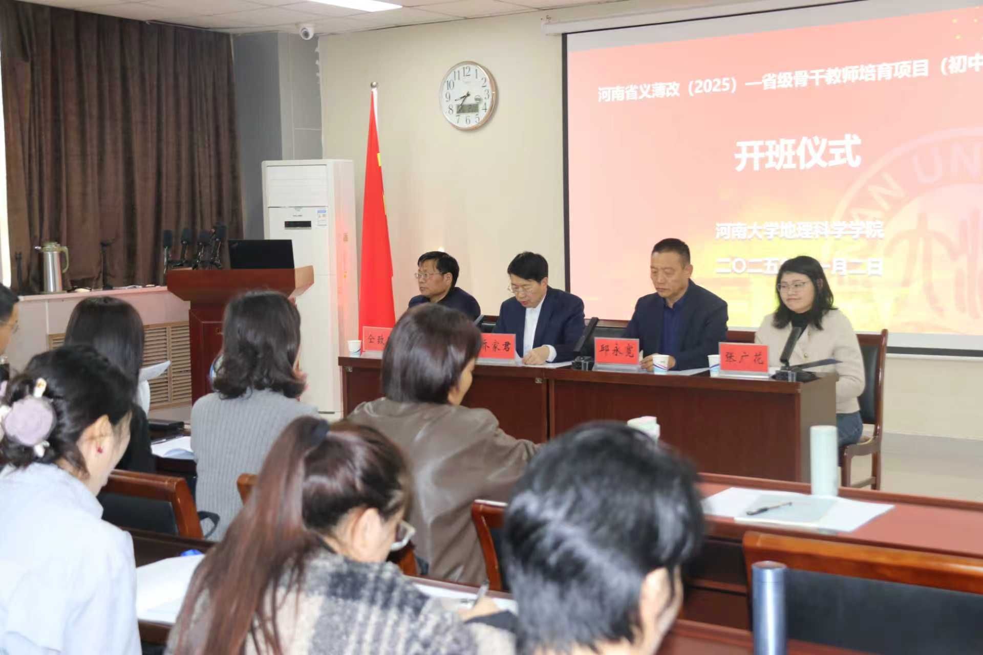 11月2日上午,2025年义务教育师资薄弱环节改善暨中小学教师素质提升工程——省级骨干教师培育项目(初中地理)培训班开班仪式在BetWay体育平台地学楼215报告厅举行,地理科学学院党委书记乔家君、副院长邱永宽、学科教学硕士生导师张广花、继续教育中心主任仝致琦以及培训班全体学员参加。开班仪式由邱永宽主持。